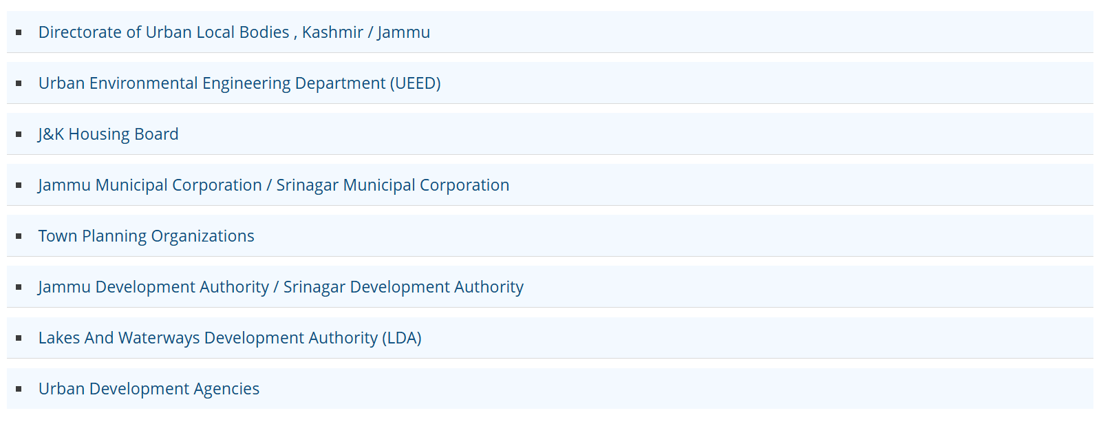 The Govt. of Jammu and Kashmir has taken cohesive steps to strengthen the motive of Local Self Government at grass root level. A Local Self-government is the management and governance of local affairs by a local body or authority. These local bodies may be Municipal Corporations/ Councils/ Committees or Panchayats, as on date every Local Body Institution J&K is having an elected representative of each ward and having Presidents, Vice Presidents and also having House of elected Ward Members for making policies/ strategies/ developmental Plans. The government has notified latest Act with the title of Municipal Act 2000 to run/ manage the business activities of Local Body Institutions in all ULBs. In the said Act there is a prescribed procedure to manage the business activities of all ULBs in J&K. In order to meet up the requirement of human resources and strengthen the ULBs in all sectors the Government also publicized Jammu and Kashmir Recruitment Rules under SRO 417 dated 18/12/2008.