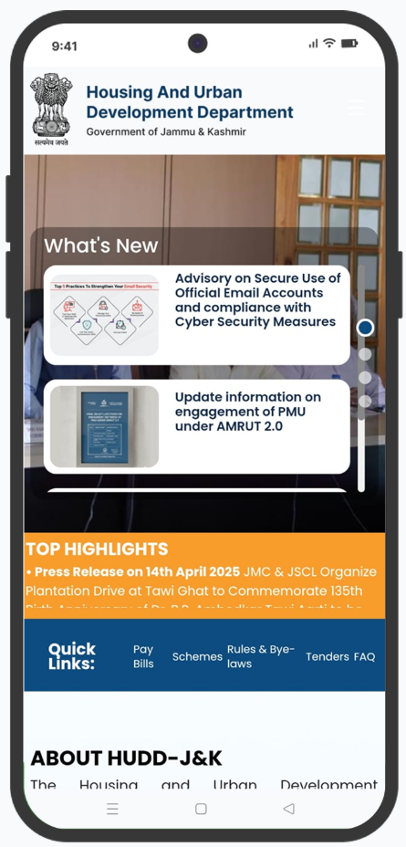 The Government also kept provision for developmental works for all ULBs under Capex Plans every year for meet up the basic requirements of the inhabitants of towns. Due to migration of people from Rural to Urban the basic needs of the people have been increased manifold and Urban Local Body Institutions have the mandate to provide all the facilities, so the Municipal Councils/ Committees providing all civic amenities to the inhabitants of towns like Birth & Death certificates, Building Permissions, Sanitation, De-silting of drains, Street Lightening, High Mast Lights, const. of Lanes, Drains, Big Nallahs, Iron Gratings over drains, Reg. of House Numbering, Bus Stands, Shopping Complexes, Play Grounds, Cremation Grounds, Graveyard, Material Recovery Facilities for Solid Waste Management, Public Toilets/ Community Toilets, Integrated Household Latrines (IHHL), Shelters for Houseless people, Houses for all under PMAY, Development of Water Bodies, Water connections to every household under AMRUT2.0, Trade License, Reg. of Street Vendors, Mobile Tower permission etc. and many more other schemes / programs. The development plans have been implemented/ executed by the executing agencies i.e. concerned PWD(R&B) Divisions in all ULBs. Being a controlling officer the Directorate of Urban Local Bodies Jammu monitoring the progress and releases funds to subordinate offices for development activities.